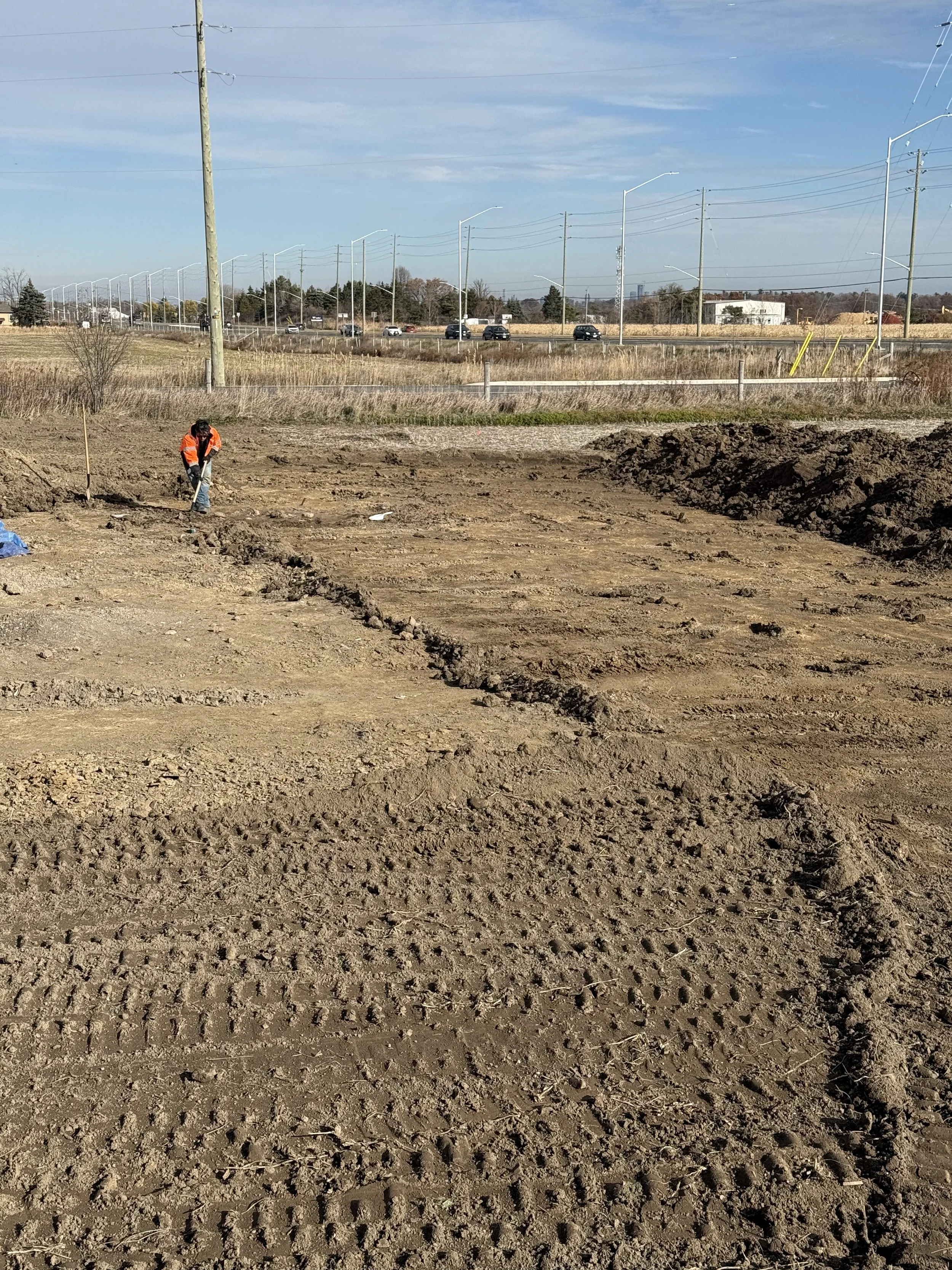 Our process begins with thorough coordination with site archaeologists, and Indigenous monitors to ensure we follow all provincial and indigenous community protocols. Using specialized excavation techniques, I carefully strip and remove topsoil in controlled layers, allowing for the safe identification and of features and the recovery of any artifacts that may be present .